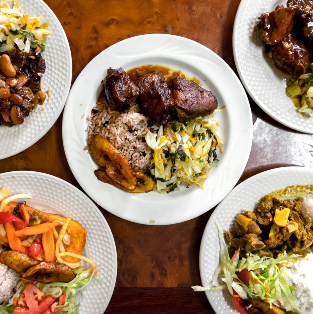 | Oxtails & Oxtails Known for its unbelievable flavor pieces of oxtail are carefully cooked with lima beans and simmered in special seasonings. Tender organic goat meat stewed in our house blend curries. Double Stew Pea A combination of beef, pork, peas, and long skinny flour dumplings. (available Sat.) | $49.99 $28.99 |